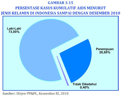 Karena latar belakang itulah, saya iseng-iseng nongkrong di website milik KEMENKES buat nyari informasi. Dan akhirnya saya berhasil mengunduh file 'Profil Data Kesehatan Indonesia Tahun 2011'. Setelah dibuka, astaga... tabel-tabel di dalamnya bikin puyeng, kayak lagi liat laporan keuangan. Hanya satu yang sejak masih proses mengunduh selalu mengobarkan rasa penasaran saya, yaitu laporan tentang HIV/AIDS.